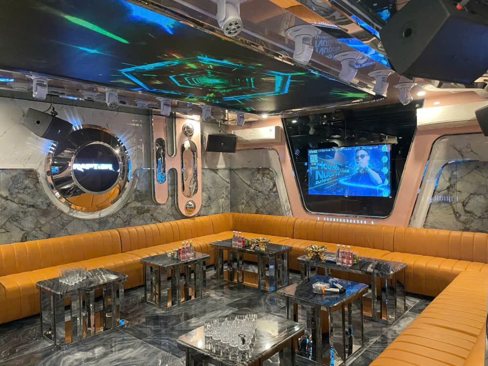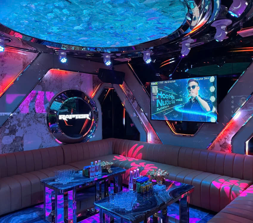 1. Không gian "Cool Ngầu" - Thiết kế của tương lai Ngay từ khi bước vào, bạn sẽ cảm nhận được một không khí hoàn toàn khác biệt. Raptor từ bỏ lối trang trí cổ điển để khoác lên mình một "bộ áo" hiện đại với những đường nét góc cạnh, mạnh mẽ, kết hợp cùng vật liệu kim loại và hệ thống đèn neon, đèn led ma trận đầy ấn tượng. Mỗi phòng hát là một "buồng lái" công nghệ cao, sẵn sàng đưa bạn vào một bữa tiệc âm nhạc không giới hạn.